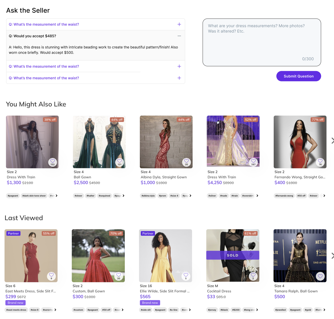 Manage Inventory: Bulk upload, edit, and track thousands of listings with filters by style, color, designer, size, and price.